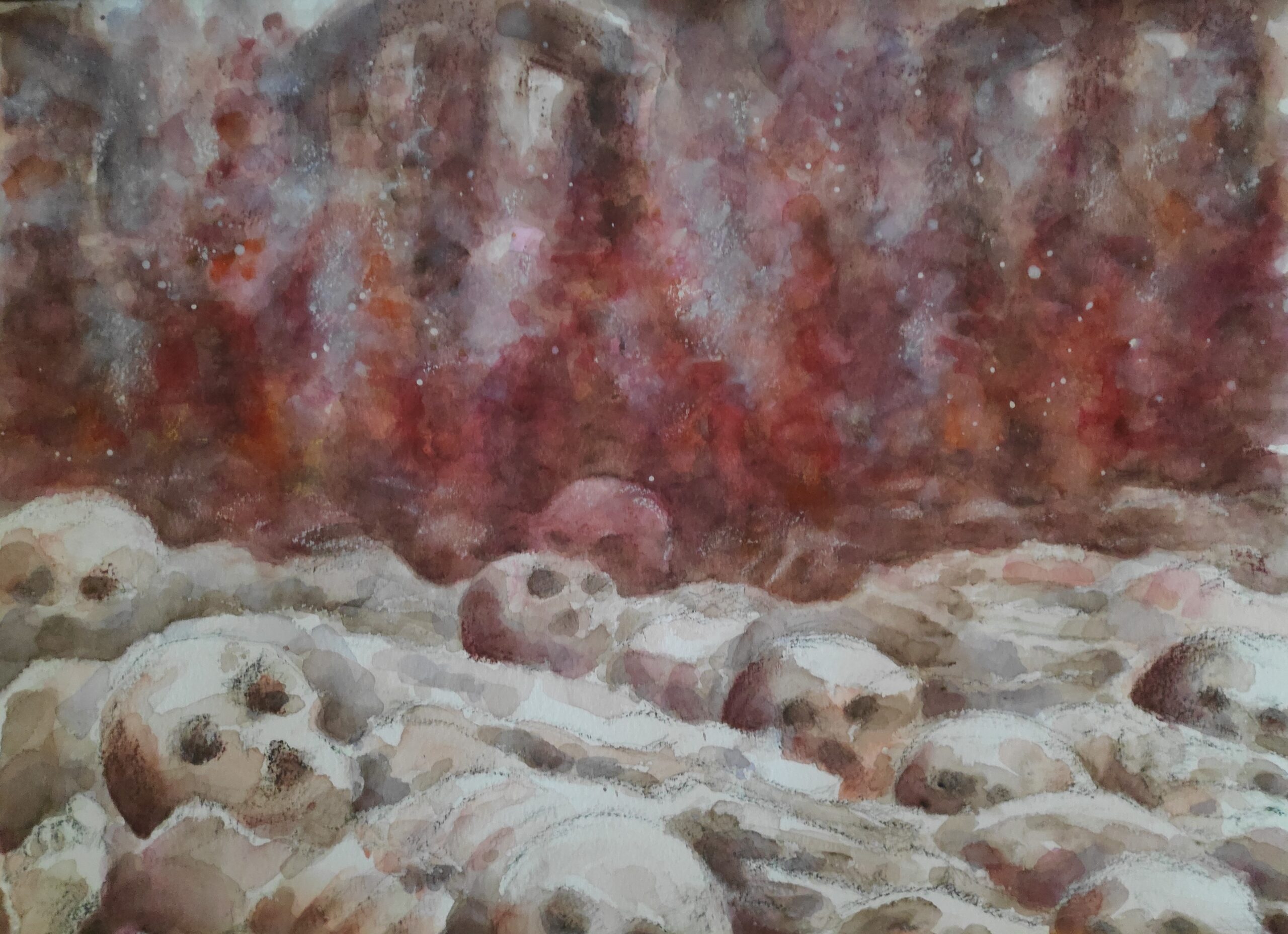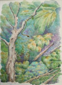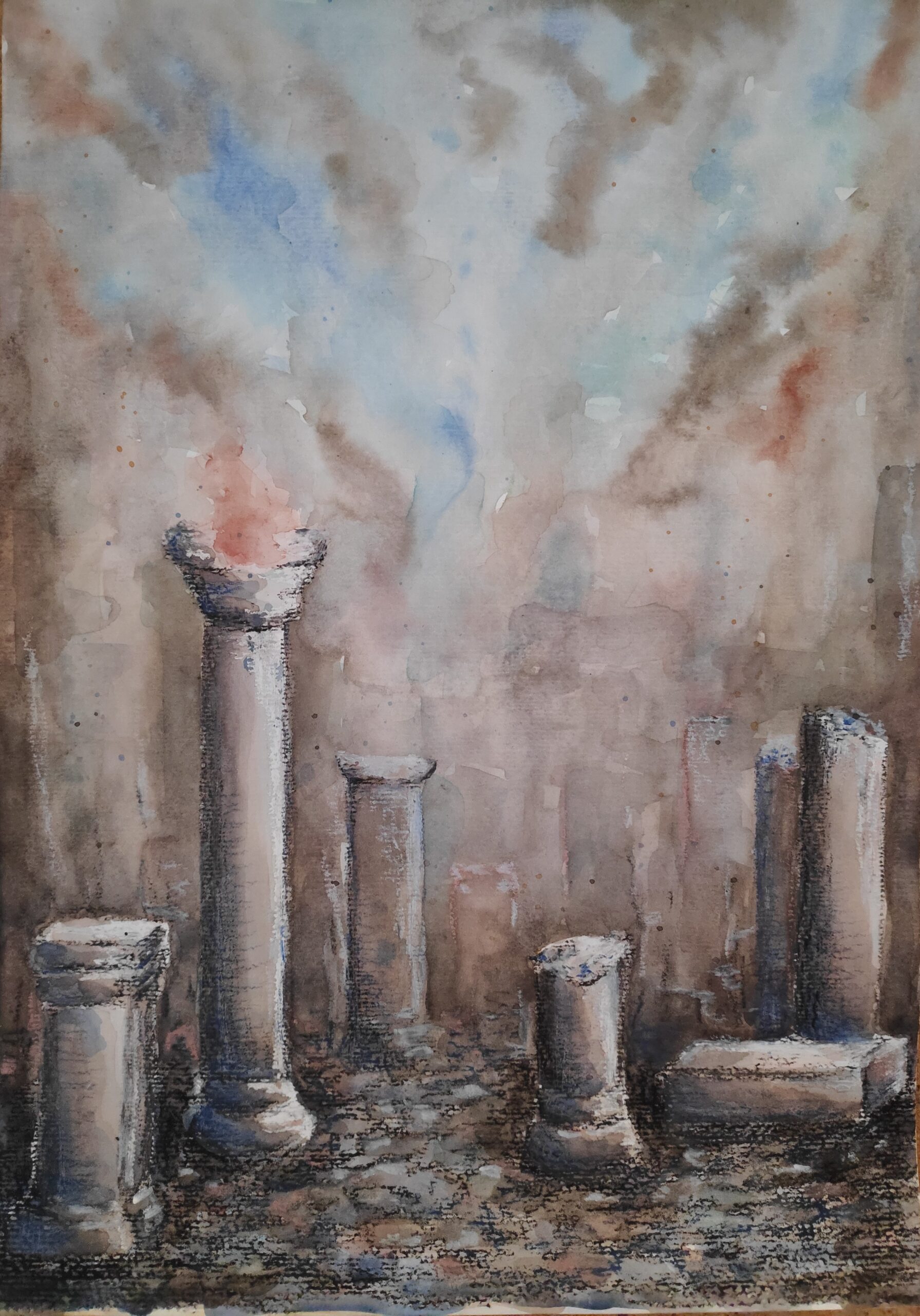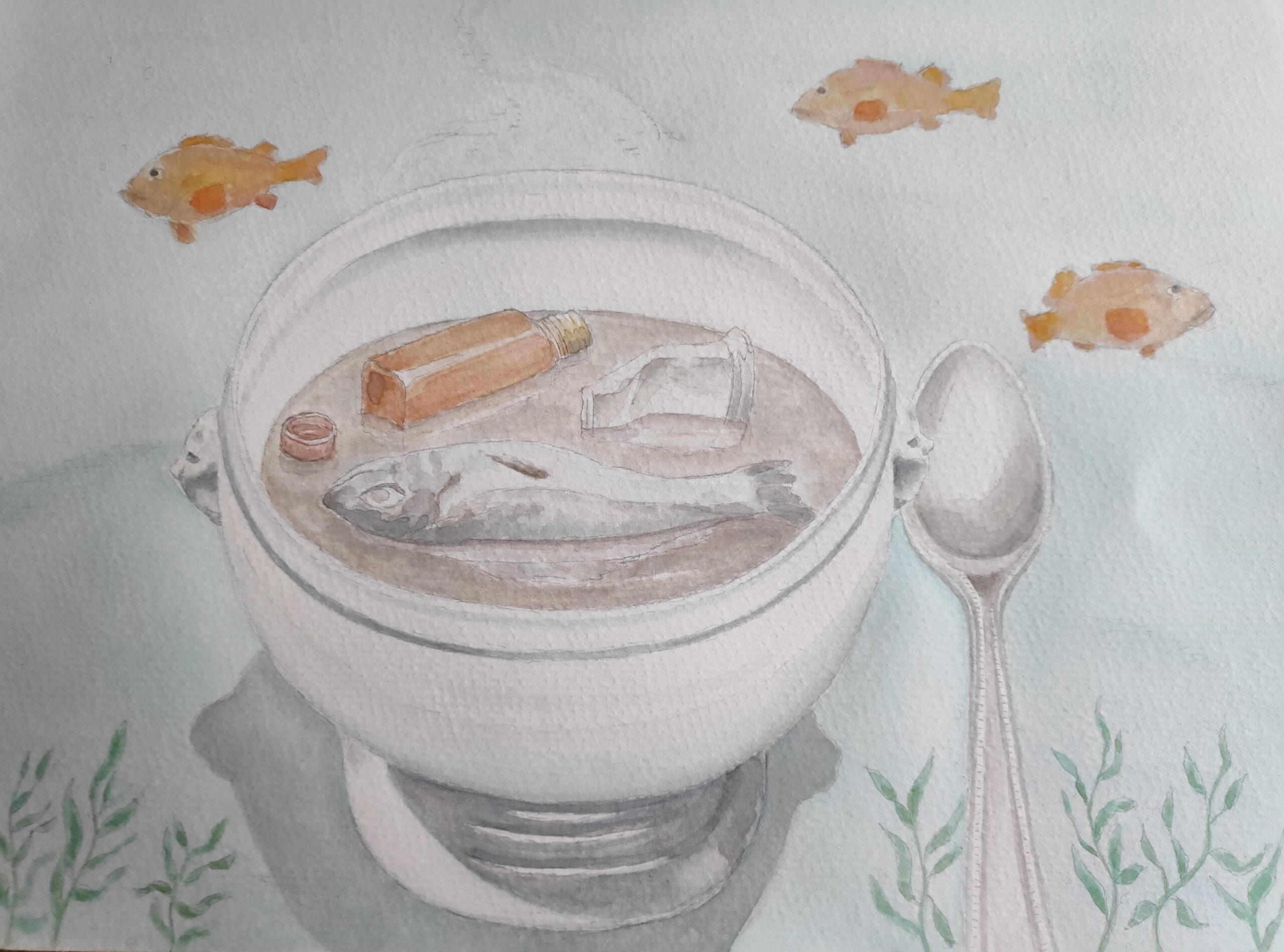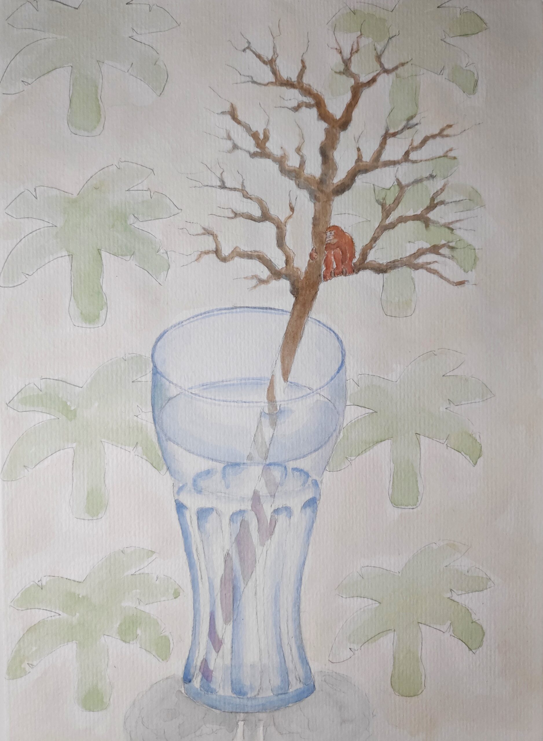 2022 entstanden Aquarelle, die darstellen, dass unser Alltag oberflächlich weiterfunktioniert, während an anderen Orten unseres Globus bereits die Folgen des Klimawandels spürbar sind: